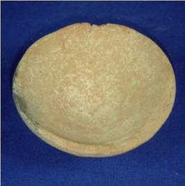 | Description / विवरण | Coarse terracotta vessel may be a bowl or a deep plate with inverted rim, round flayed body and a circular footed base. Some parts of the rim is broken while close striation marks are prominent. |