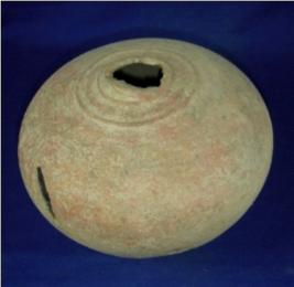 | Description / विवरण | Semi fired big terracotta pot with oval base, bulbous body and a narrow neck, which is broken. Carnation marks are visible on the upper part of the body and red slip is partially seen. |