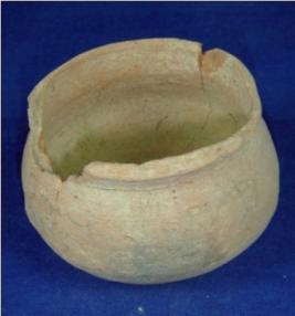 | Description / विवरण | Coarse terracotta vessel - pot, broad mouth with low neck. The rim is thick and averted, but its some part is broken. |