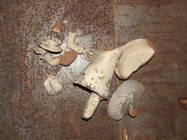 | Description / विवरण | A clay model of a Khidmatgar holding a cap. It is fully damaged. |