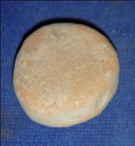 | Description / विवरण | Flat and circular terracotta disc, with irregular surfaces, a perforated hole at the edges, clay incrustation all over. |