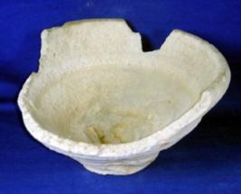 | Description / विवरण | Broken terracotta bowl, coarse, thick in fabric, with inverted rim, flared body, with corrugation works and flat, circular base. Exterior contain deep depression. Clay incrustation all over. |
