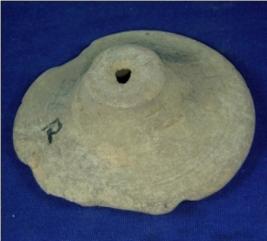 | Description / विवरण | Terracotta lid having flat and round body and circular knob with hole. The lid has close striation marks on both sides. The inner side is having thick lines of decoration and conical groove. |