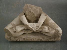 | Description / विवरण | It is an image of a Jain trithankar. Upper waist is broken. Hands from shoulder to elbow are broken. It is in posture of meditation. Legs knee are also partially broken. Below Asana some decoration has been made and an inscription Two lines is written in Devnagari script dated Samvat 1231. There is a symbol of chakra on the palm sole. |