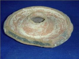 | Description / विवरण | Terracotta lid having a hole in the centre. The obverse side is plain while the rim is plain and thick. It is ill fired signified by its cross section. |