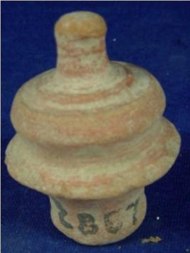 | Description / विवरण | Terracotta lid having circular projections of increasing diameter from top to bottom. Most probably it is a lid of a surahi. |