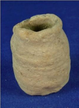 | Description / विवरण | Coarse and ill fired pot with flat and round base, cylindrical body, short and narrow neck and featureless rim, which is rubbed off. |