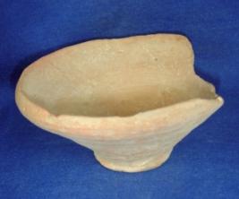 | Description / विवरण | Simple terracotta coarse vessel - bowl with featureless rim, flared sides, tapering end, deep body with flat circular base. |