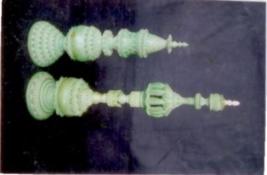 | Description / विवरण | This is a set of 2 pieces. It has flat base and white floral design on green coloured Background. |