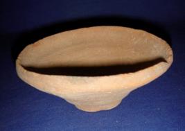 | Description / विवरण | Coarse, ill fired, terracotta bowl with circular flat base, flared body having corrugated marks outside the vertical rim. |