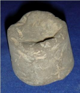 | Description / विवरण | Ill fired cylindrical terracotta Weight measurement with one surface flat and another having depression, no decoration, edges are concave. |