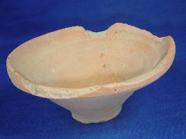 | Description / विवरण | Terracotta bowl with broken inverted rim, flared body with circular flat circular footed base. |