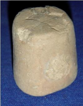 | Description / विवरण | Cylindrical terracotta Weight measurement, with flat surfaces, flaking off of some parts. |