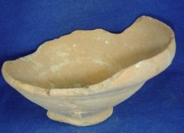 | Description / विवरण | Plain, coarse, terracotta bowl, with broken flared body and flat circular base. Earthen incrustation inside the bowl. |