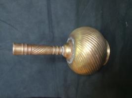 | Description / विवरण | A brass water bottle or surahi which have diagnonal lines engraved all over at regular interval. |