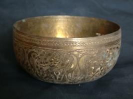 | Description / विवरण | A brass bowl which is engraved all over the outer surface. It has engravings of human figures, flowers and peacocks. |