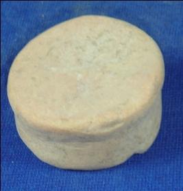 | Description / विवरण | Flat cylindrical terracotta Weight measurement with slight depression on both the surfaces the edges are concave, clay incrustation all over. |