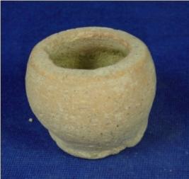 | Description / विवरण | Coarse terracotta pot with bulbous shaped body and flat circular base. Some striation marks are seen on the body. |