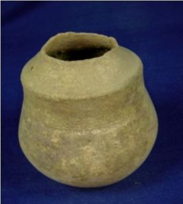 | Description / विवरण | Coarse terracotta pot, the upper pot from neck is broken, double lota body, the diameter of lower part is bigger than the upper part and a slightly oval shape base. The striation marks are prominent. |