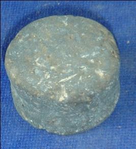 | Description / विवरण | Cylindrical terracotta Weight measurement with flat surfaces, the edges are concave, clay incrustation all over. |