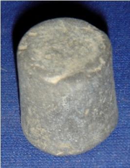 | Description / विवरण | Cylindrical plain terracotta Weight measurement with flat circular ends, one end is broader than the other. |