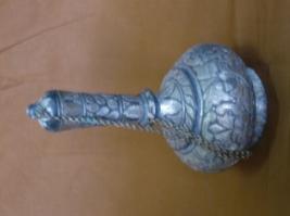 | Description / विवरण | A water bottle with a lid which is tied up with a iron chain. Relief work is done on the base with silver. It has floral motifs. |