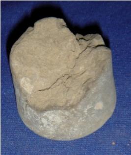 | Description / विवरण | Coarse, ill fired cylindrical Weight measurement with flat circular end at one side and the other end is corroded. |