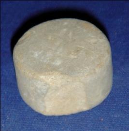 | Description / विवरण | Plain, cylindrical terracotta body Weight measurement with flat circular ends, corroded at the middle of the body. |