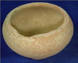 | Description / विवरण | Coarse terracotta vessel - pot having flat and circular base, bulbous body and mouth is wide without neck. The rim is featureless. |