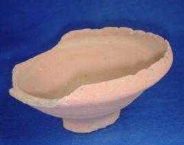| Description / विवरण | Terracotta bowl, with carinated inverted rim which is broken from one side, broad mouth, flared body and circular footed base. |