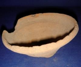 | Description / विवरण | Ill fired, terracotta bowl having footed base in circular shape, flared sides, with vertical rim. sharp carination is in the interior surface. Portion of a rim is broken. |