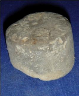 | Description / विवरण | Irregular terracotta Weight measurement, having cylindrical body, one side is corroded, ill fired which is seen from the broken core. |
