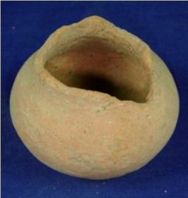 | Description / विवरण | Coarse terracotta pot, neck is broken, bulbous shape body and a flat circular base. Some striation marks are seen on the body. |