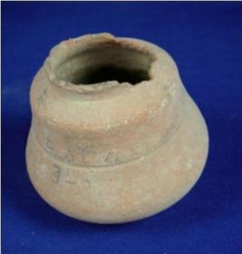 | Description / विवरण | Semi fine, terracotta pot with narrow neck which is partly broken, featureless rim with double lota body, where the lower part s diameter is bigger than the upper part, striation marks are seen in the middle portion of pot. |
