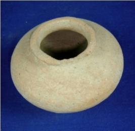 | Description / विवरण | Semi fine terracotta pot having averted rim with concavity below, a part of the rim also broken, round body and a flat circular footed base. |