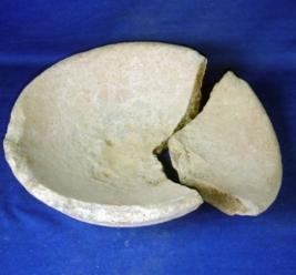 | Description / विवरण | Terracotta bowl with inverted rim, deep round body and flat circular base, carination marks are visible in the outer side of the body. |