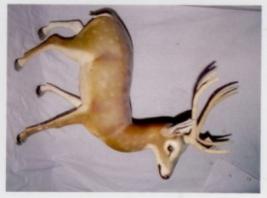 | Description / विवरण | This is a model of stag male is made of plaster of paris. Its limbs gives a natural look. It is coloured with black light colour the horns are pointed. |