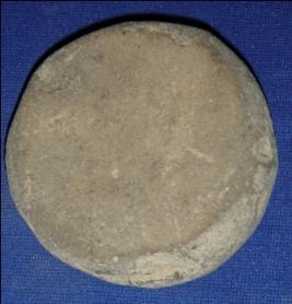 | Description / विवरण | Circular terracotta disc having plain surfaces, while one surface has shallow depression, bi-colour shows, it is ill fired. |