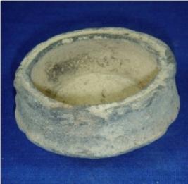 | Description / विवरण | Plain thick, terracotta vessel - bowl, with broad mouth, cylindrical body and flat stand. The body is slightly narrow, near the rim. |