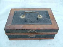| Description / विवरण | It is a rectangular box having a cover attached with socket. Within it another box is kept having three chambers. Its inner part is painted in green colour, outer part is coloured with black and golden colour. It has a handle carying the box. |