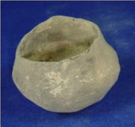 | Description / विवरण | Small plain, terracotta vessel - bowl, with broad mouth and round body. It is probably handmade and has a crude finishing. |