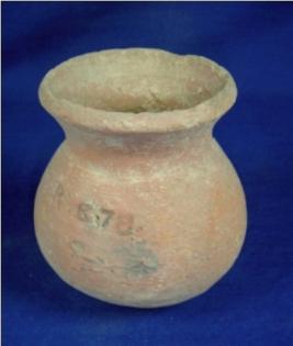 | Description / विवरण | Coarse ill fired terracotta pot with circular base, bulbous body high neck, broad mouth and averted rim. The interior has sparse striation marks. The pot has clay incrustation at few portions. |