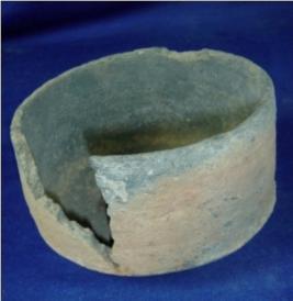 | Description / विवरण | Terracotta bowl of circular shape with flat round base and broad mouth. A portion of bowl is broken. It is ill fired, signified by its colour. |