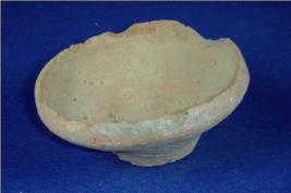 | Description / विवरण | Small terracotta bowl with narrow flat base and slightly inverted rim, which is partially flaked off. Its outer surface is rough while inner surface is plain. |