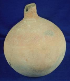 | Description / विवरण | Ill fired, coarse, terracotta pot surahi with high and broken narrow neck, bulbous body, circular base which is broken and cracked from the base. Circular incised lines below the neck is seen with mild carnations, |
