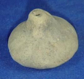 | Description / विवरण | Coarse, ill fired, small terracotta container having bulbous body, upraised circular top with a small hole. |