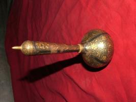 | Description / विवरण | Water - bottle Surahi of steel having damascened in gold - koft work. |