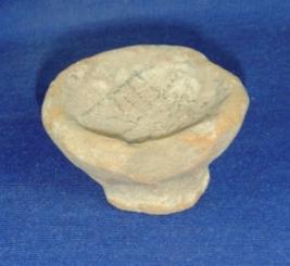 | Description / विवरण | Plain, terracotta coarse vessel - small earthen lamp with flaring sides and stand with circular rim, which is hollow inside. The rim is slightly broken. |