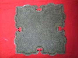 | Description / विवरण | Copper tray in square shape with curved rim. Deep curves in the middle of the rim on the four sides, giving it an unusual shape. It has indented borders. Bold floral creepers has been crissed-crossed over the tray. |