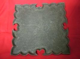 | Description / विवरण | Copper tray. A square shaped tray with indented borders.The deep curves in the centre of the four side borders of the square gives it an unusual shape. A Kashmiri design done all over. The bold floral creepers has been crissed-crossed over the tray. |